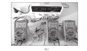 圖4(a)是晶體管測試電路板的原理圖,圖4(b)是晶體管測試電路的實物連接圖,左側的電流表顯示電路的基極電流Ib,中間的電流表顯示集電極電流Ic 或發(fā)射極電流Ie,右側電壓表顯示晶體管集電極和發(fā)射極之間電壓Uce。實驗測得的數(shù)據(jù)如表3 所示。