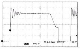 圖6 380V DC輸入80W滿載輸出時開關(guān)管漏-源極電壓波形