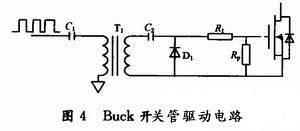 為了減小DB的反向恢復(fù)電流,進(jìn)一步減少存儲進(jìn)驅(qū)動電源的電荷量,本文中的DB采用快速恢復(fù)二極管。Buck電路開關(guān)管的驅(qū)動電路,如圖4所示。