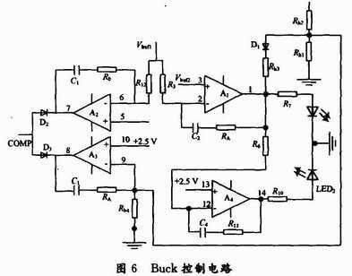 Buck控制采用了最大占空比為100%的UC3842芯片,不對稱橋控制采用了最大占空比為50%的UC3844芯片。同時(shí)兩級電路都采用電壓型的控制。不對稱橋采用的是前饋控制,當(dāng)輸入的電壓有波動時(shí),占空比能夠相應(yīng)調(diào)整,以保證前級的輸出基本不變,如圖5所示。