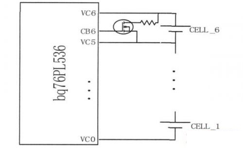 電壓檢測(cè)采用bq76PL536 芯片, 它同時(shí)檢測(cè)3到6節(jié)電池, 測(cè)量的單只電池的電壓范圍為1~ 5V。