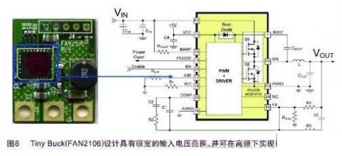 3.最終全集成開關(guān)將使功率級設(shè)計更迅速易行。除了Digital-DC系列的FD2106之外,F(xiàn)AN210x TinyBuck系列也可為3A FAN2103和6A FAN2106應(yīng)用提供全集成同步降壓功能(圖8)。