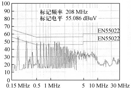 圖7 變壓器內(nèi)部不設(shè)置屏蔽的傳導(dǎo)EMI 測(cè)試結(jié)果