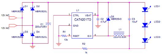 圖1:采用CAT4201的MR16燈電路