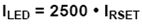 RSET引腳用來(lái)配置輸出電流值。RSET電壓調(diào)節(jié)在1.2 V。在RSET和GND之間增加一個(gè)電阻可以決定RSET電流,該電流與輸出恒壓為近似的線性關(guān)系: