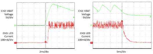 輸出電容C2建議至少為4.7 μF,以減少輸出紋波。較大容量的C2將有效抑制輸出紋波,同時(shí)可提高幾毫安的輸出電流。不過,由于其對(duì)總能效的貢獻(xiàn)微不足道,且人眼無(wú)法感知高頻波動(dòng),沒有必要使用大于10 μF的電容。L的值建議為22 μH,以將開關(guān)頻率設(shè)置在約為150 kHz。LED電流范圍為0至350 mA,所以800 mA左右的電感有效額定電流就足夠了。