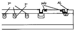 這種結(jié)構(gòu)在版圖設(shè)計上通過增加鋁場板的長度來實現(xiàn),比較容易控制,使得金屬覆蓋過離主結(jié)最近的場限環(huán),它不僅起到了場板和場限環(huán)的效果,又避免了傳統(tǒng)結(jié)構(gòu)在場板的邊緣產(chǎn)生新的電場峰值,避免了電壓在場板邊緣和場限環(huán)之間的提前擊穿。
