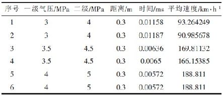 本測速系統(tǒng)已成功應(yīng)用在雙級空氣炮彈射物體測速實驗中,實驗數(shù)據(jù)如表1 所示。