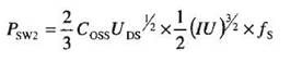 式中 I 為 正向電流有效值,RDS(on)為通態(tài)電阻,fS為開關頻率,CGSS為輸入電容,Coss為輸出電容,D為占空比??梢?,正向導通損耗與RDS(on)成正比。不同VDS的MOSFET, RDS(on)往往可相差幾個數(shù)量級,所以相同電路拓撲中采用100V MOSFET的損耗比采用200VMOSFET明顯要低??紤]到低VDS的MOSFET比高VDS MOSFET的Coss要小,據(jù)關斷損耗式,表明低VDSMOSFET的關斷損耗也小。驅動損耗式為開關過程中輸入電容充放電引起的損耗,該損耗與柵一源驅動電壓的平方成正比。由于采用了兩級變換器,對隔離級來說,因穩(wěn)壓級己經(jīng)將較寬的輸入電壓穩(wěn)在固定的中間總線電壓上,變壓器的變比可以達到最佳。