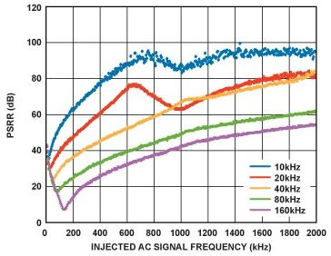 給定偏移下的LDO噪聲頻譜密度通常可通過LDO數(shù)據(jù)手冊的典型性能曲線讀取。