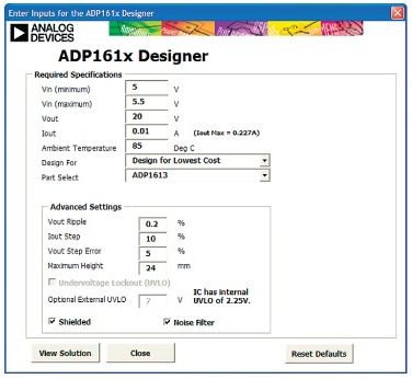 圖8.ADP1613升壓轉(zhuǎn)換器EXCEL設(shè)計(jì)工具