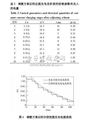 (2) 減小各段恒流值下降梯度。通過試驗確定該型電池初次恒流值I (1) ,并減小階段恒流充電的電流下降幅度。如果降低充電電流后,達到充電終止容量梯度值的時間很短(設定一個最小充電時間) ,則適當增大電流下降的幅度。
