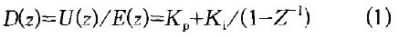 式中:Ki -- 積分系數(shù),Ki= KoT/Ti;T--采樣周期; Ti-- 積分時間常數(shù);Kp-- 比例因子;U(Z)--控制量輸出的z傳遞函數(shù);E(z)- -偏差量的z傳遞函數(shù)。