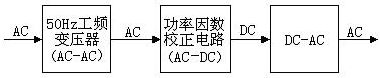 這是一種較早采用的方案,技術(shù)也比較成熟,其主要優(yōu)點是電路結(jié)構(gòu)簡單,實現(xiàn)較為容易。主要缺點是電能經(jīng)過三級變換,降低了逆變器的可靠性和效率;工頻隔離變壓器體積龐大、笨重、耗費材料多;PFC級的輸出,即DC-AC的輸入為400V左右的高壓直流電,這就對許多需要逆變級具有低壓輸入的應(yīng)用場合產(chǎn)生了限制。比如鐵路用逆變器和航空用逆變器等多個重要的逆變器應(yīng)用領(lǐng)域都需要110V的正弦交流電輸出,若采用這種構(gòu)成方案,則不僅可靠性難以得到保證,而且逆變器的效率會進一步降低,一般不會超過80%。
