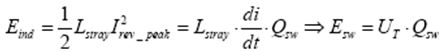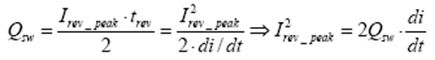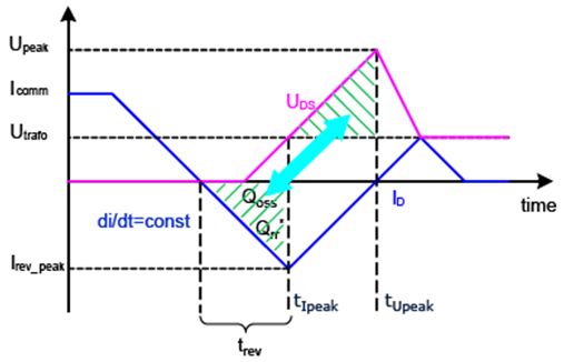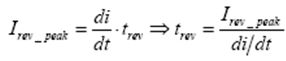 要計算MOSFET關(guān)斷過程中的開關(guān)損耗,必須首先確定反向電流峰值Irev_peak: