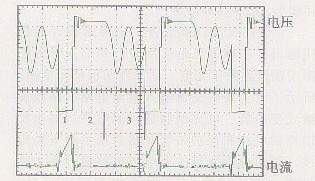 圖5所示的是工作在完全能量轉(zhuǎn)換狀態(tài)下, 開關(guān)管Q1上的電壓與電流波形。在這種工作模式下, 每個開關(guān)周期被分為三個階段( 分別如圖中1、2、3所示) .在階段1, 開關(guān)管導(dǎo)通, 變壓器原邊電流沿斜線上升到峰值電流, 并將能量儲存在高頻變壓器中。