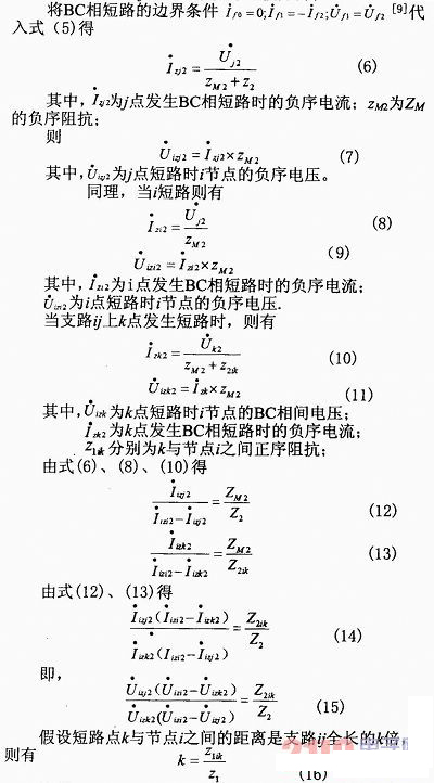 本文結(jié)合我國配電網(wǎng)的實(shí)際情況,提出首先采用比較各節(jié)點(diǎn)電壓確定故障區(qū)段,然后將故障區(qū)段始端故障負(fù)序電壓與本線路始端和末端短路時(shí)的負(fù)序電壓進(jìn)行運(yùn)算,從而能夠找出故障點(diǎn)的確切位置。本方法簡單實(shí)用,在故障發(fā)生時(shí)僅需作出對(duì)比判斷,大大節(jié)省了計(jì)算時(shí)間,誤差分析表明本方法有較高的準(zhǔn)確度。