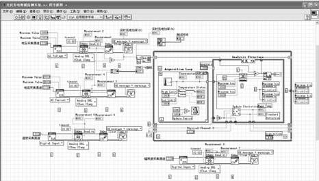 圖5是光伏發(fā)電數(shù)據(jù)監(jiān)測系統(tǒng)前面板對應(yīng)的部分程序框圖,主要包括電壓采集、電流采集、輻照度采集、溫度采集及其處理程序。