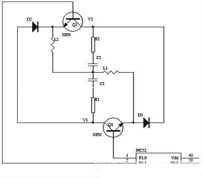 本實(shí)驗(yàn)中,選用兩個(gè)小功率NPN管C1815(Q1、Q2)來替代開關(guān)管,用89C51芯片的P1.0和P1.1腳控制Q1、Q2的開關(guān)。同時(shí),蓄電池的端電壓V1和V2由差動(dòng)放大電路采集,經(jīng)A/D轉(zhuǎn)換送到CPU。在整個(gè)過程中,電壓每20ms采樣一次,每隔1s上傳上位機(jī)并保存并自動(dòng)繪制曲線。圖5為試驗(yàn)電路圖。