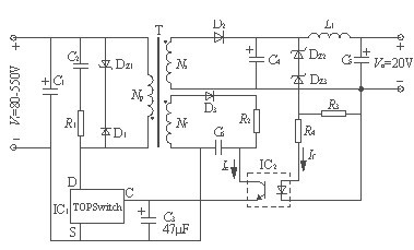 第七步確定反饋繞組的參數(shù),反饋是反激的電壓,其電壓是取自輸出級的,所以反饋電壓是穩(wěn)定的,TOP 的電源電壓是5.7到9V,繞上7匝,那么其電壓大概是6V多,這就可以了,記得,反饋電壓是反激的,其匝數(shù)比要和幅邊對應(yīng),懂什么意思嗎,至于線,因為流過其的電流很小,所以就用繞原邊的線繞就可以了,無嚴(yán)格的要求.