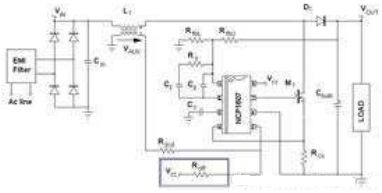 圖2 NCP1607驅(qū)動(dòng)的應(yīng)用段典型應(yīng)用示意圖