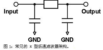 由于電磁干擾濾波器多應(yīng)用于電子產(chǎn)品的輸出入端口,π型(π-model)低通濾波器架構(gòu)中的Input端點及Output端點對GND的電容,一般會采用靜電放電防護組件,以兼做靜電放電防護之用。