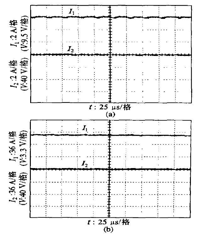 圖5 示出不同充電電壓時的充電電流波形。由圖可見,在不同充電電流給定下均取得了良好的實(shí)際充電電流波形,并且當(dāng)蓄電池電壓變化時,因在線的變參數(shù)PI 調(diào)節(jié),充電電流保持恒定,因此系統(tǒng)具有良好的動態(tài)性能和恒流特性。目前該充電電源己在多艘大型船舶中使用。