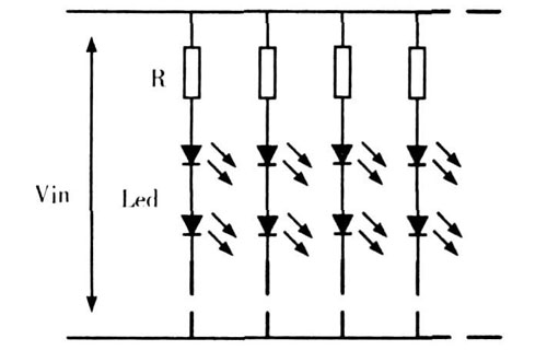 迫于小功率LED 要想實(shí)現(xiàn)和大功率相同的照度,所需數(shù)量大,如果每路驅(qū)動(dòng)使用一個(gè)恒流驅(qū)動(dòng),將大大增加驅(qū)動(dòng)成本,鑒于此問(wèn)題,小功率LED 適合采用恒壓驅(qū)動(dòng)方式。
