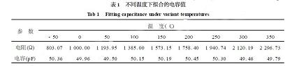擬合參數(shù)最大時為5.037×10-8,最大相對誤差為0.78%。當溫度變化時,金屬鉑電阻值發(fā)生變化,在不同的溫度下擬合的電容值和溫度的關(guān)系如表1所示(加入1%的白噪聲)。