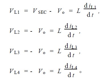通過(guò)以上分析可以看出, 倍流整流結(jié)構(gòu)的二次側(cè)2 個(gè)濾波電感電流在濾波電容上相互疊加, 從而使得輸出電流紋波變得相當(dāng)小。
