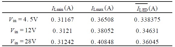 表1 三種輸入電壓情況下的驅(qū)動電流
