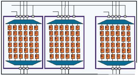 假設(shè)設(shè)計的某個時鐘驅(qū)動了大量觸發(fā)器,以至它們的峰值開關(guān)動作超過設(shè)計的總體功率預(yù)算。我們不希望測試邏輯去改變?nèi)魏螘r鐘,相反我們將設(shè)計分割成N個模塊,各模塊具有自己的掃描啟動引腳,并且包含自己的掃描壓縮邏輯和掃描鏈。(如圖2所示)模塊的數(shù)量和組成需要仔細選取,以便任何單個模塊(包括具有大部分觸發(fā)器的模塊)的觸發(fā)器開關(guān)速率不超過總功率預(yù)算。從這方面講,可以認為分割將功率預(yù)算硬連(hardwire)進了設(shè)計。