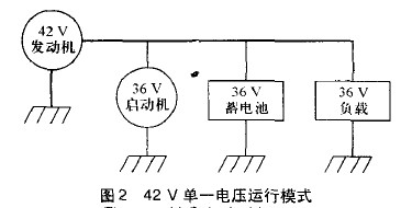 在新的電氣系統(tǒng)中,有兩種實(shí)施方案:一種是全車(chē)42V單一電壓方案;另一種是42V/14V雙電壓方案5。