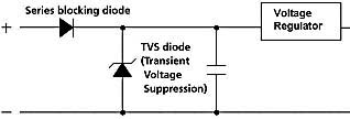 為了保護(hù)電子模塊不因蓄電池極性接反而損壞,常用的解決方案是使用一個(gè)正向?qū)ǎㄕ鳎┒O管來防止電流反向流動(dòng)(見圖1)。