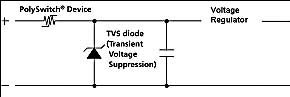 采用PolySwitch器件來取代上述應(yīng)用中的正向?qū)ǘO管(見圖2),提供了包括減少電壓降等多項(xiàng)優(yōu)勢(shì),這是因?yàn)榫酆衔镎郎囟认禂?shù)(PPTC)器件兩端的電壓降一般在0.1V以上。其次,聚合物正溫度系數(shù)(PPTC)器件可對(duì)其他類型的電子部件提供額外的保護(hù)(伴熱、導(dǎo)線、繼電器和固態(tài)部件等)。