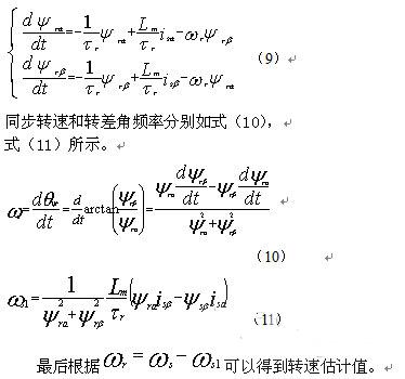 根據(jù)電壓模型定子磁鏈可以計(jì)算得到電壓模型轉(zhuǎn)子磁鏈: