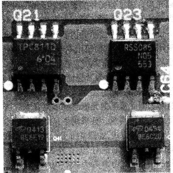 背光燈驅(qū)動(dòng)板主要由振蕩器、調(diào)制器、功率輸出電路及保護(hù)檢測(cè)電路組成,如1圖所示。在實(shí)際電路中,除功率輸出部分和檢測(cè)保護(hù)部分外,振蕩器、調(diào)制器及控制部分通常由一塊單片集成電路完成,這類集成電路常用的主要有BD(Rohm公司生產(chǎn),如BD9884FV、BD9766等)及OZ系列(凹凸微電子公司生產(chǎn),如02960、02964等);功率輸出管多采用互補(bǔ)的功率型場(chǎng)效應(yīng)管,有的采用3腳和8腳(①~③腳為S極,④腳為G極,⑤-⑧腳為D極)貼片封裝型,常見(jiàn)型號(hào)有D454、RSS085、D413、TPC8110、FDD6635.FDD6637等,如圖2所示;還有的采用由N溝道和P溝道組合的5腳或8腳MOSFET功率塊(①腳為Sl極,②腳為Gl極,③腳為S2極,④腳為G2極,⑤~⑧腳為D1、D2極),如SP8M3、TPC8406、4614、APM40520、P2804ND5G等,如圖3所示。保護(hù)檢測(cè)多由集成電路10393、358、393或LM324及其外圍元件來(lái)完成。輸出電路主要由高壓變壓器、諧振電容及背光燈管組成,并設(shè)有輸出電壓、輸出電流取樣電路。