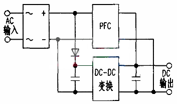 傳統(tǒng)的開關電源結(jié)構如下圖,是將功率因數(shù)校正電路(PFC,PowerFactorCorrection)和DC-DC變換電路串聯(lián)起來。因而效率低,要減少待機功率也相當困難。