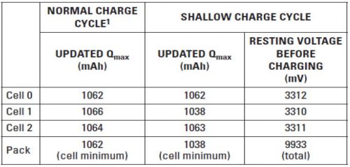 阻抗跟蹤算法將 Qmax 定義為電池的總化學(xué)容量,其以毫安小時(shí) (mAh) 計(jì)算。一次正確的 Qmax 更新,必須滿足下列兩個(gè)條件: