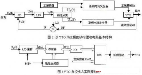 以YTO作為主振的現(xiàn)代微波信號發(fā)生器,基本都采用了復雜的鎖相環(huán)實現(xiàn)整機頻率合成。根據(jù)鎖相環(huán)特性,如果主振輸出信號頻率與理論輸出頻率相差太大,超出了環(huán)路的捕獲帶寬,則不能通過捕獲而進入同步跟蹤狀態(tài),系統(tǒng)將會失鎖。因此,在整個輸出頻段中對YTO主振電路實施校準,使其達到一定的預置準確度而保證環(huán)路迅速進入鎖定狀態(tài),是十分必要的。
