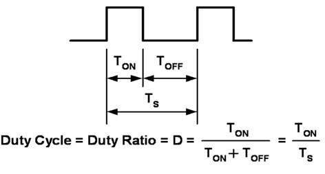 為LED提供脈波電流的方法也稱作PWM,這種方法已經(jīng)成為改變光等級的首選方法。LED本身是矽元件,對應流經(jīng)它們的電流導通及關閉而快速地導通和關閉。開關時間在100奈秒(ns)等級,相當于最大頻率10MHz。應用通常以100Hz~100kHz的頻率工作。頻率低于100Hz時,人眼會觀察到LED光閃爍。頻率在500Hz~20kHz之間時,電路可能產(chǎn)生能聽到的雜訊。調光是通過在單個開關周期的某部分時間內將LED導通;而在此開關周期的其余部分時間內,將LED關閉來實現(xiàn)。這種導通關閉周期稱作工作周期(D),其表達方式為LED導通時間(TON)除以整個開關/導通周期時間(TS)(圖3)。
