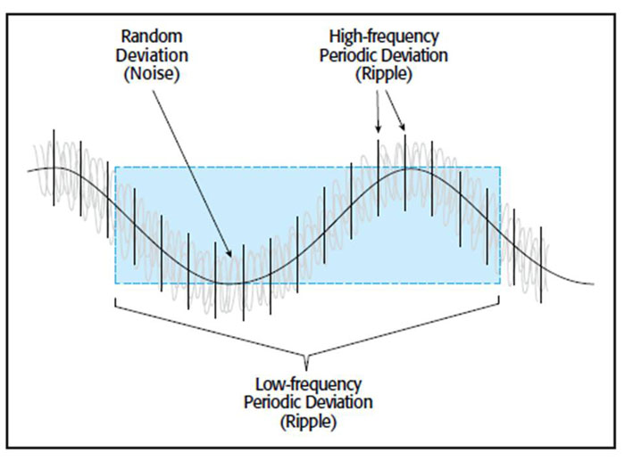 圖5 此簡化示意圖說明了周期(紋波)和隨機(噪聲)失真的概念