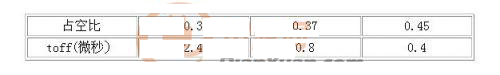 該電路具有以下優(yōu)點:①電路結構簡單可靠,實現(xiàn)了隔離驅(qū)動。②只需單電源即可提供導通時正、關斷時負壓。③占空比固定時,通過合理的參數(shù)設計,此驅(qū)動電路也具有較快的開關速度。該電路存在的缺點:一是由于隔離變壓器副邊需要一個假負載防震蕩,故該電路損耗較大;二是當占空比變化時關斷速度變化加大。脈寬較窄時,由于是貯存的能量減少導致MOSFET柵極的關斷速度變慢。表1為不同占空比時關斷時間toff(驅(qū)動電壓從10伏下降到0伏的時間)內(nèi)變化情況。