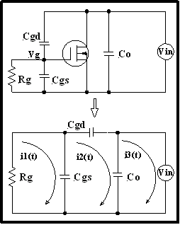 其中:Vg (t) =門極電壓;a = 漏極電壓的擺率;Rg = 包括門極驅(qū)動(dòng)器的總門極電阻;Cgs = 門極與源極之間的電容;Cgd = 門極與漏極之間的電容;顯然,Cgd越大,則耦合電壓越大。