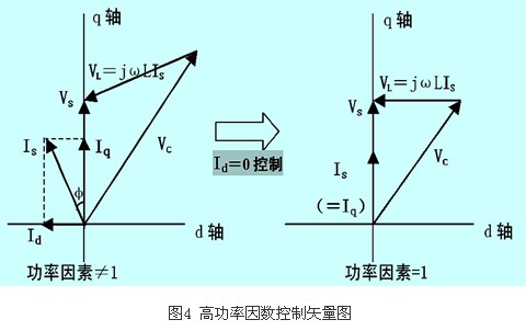 根據(jù)圖4可以知道,要把整流器的功率因數(shù)控制在1.0的話(huà),只要把無(wú)功電流設(shè)定值設(shè)為0(id﹡=0),通過(guò)整流器控制系統(tǒng)調(diào)節(jié)改變輸出電壓vc的大小和相位,使實(shí)際無(wú)功電流分量id=0,那么is=iq+id=iq,is就能與vs保持在同相位,功率因數(shù)控制到了1.0。
