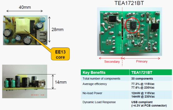 圖2:采用TEA1721的5W手機充電器外形尺寸很小