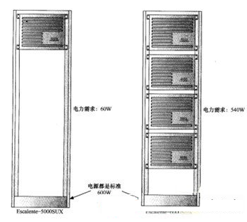 以圖所示的服務(wù)器為例,兩個(gè)服務(wù)器來自同一個(gè)系列WasteTech""sEscalenteline。左邊的WasteTech""sEscalente5000SUX配置了足夠的硬件,只需要60W的電能。右邊的6000SUX的最高配置安裝上足夠多的硬件后則要消耗540W的電能。然而兩臺(tái)服務(wù)器卻使用了同樣的電源。盡管目前的電源使6000SUX獲得了足夠的電能,但是對(duì)于消耗電量較少的服務(wù)器而言,則提供了過多的電能。這種過度供電造成了浪費(fèi)。