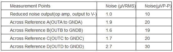 表2. 圖1電路使用MAX6143 2.5V電壓基準(zhǔn)源時所測得的噪聲電壓