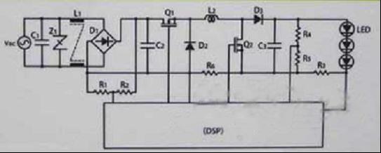 為了使LED照明獲得恒定電流,采用了DSP微控制器。開關(guān)頻率約為200kHz。輸出電容器采用了兩個(gè)約5μF的MLCC。“一般情況下,該容量的 MLCC無法完全吸收脈動(dòng)電流,不過通過改進(jìn)DSP側(cè)的控制,不會感覺到照明器具的閃爍”(村田制作所)。主電路采用非絕緣升降壓型,沒有設(shè)置PFC(功 率因數(shù)改善)電路。外形尺寸為180mm×19.4mm×6.5mm。