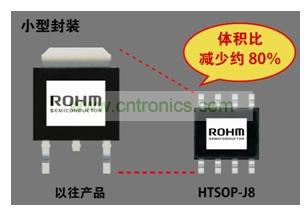 HTSOP-J8封裝(6.0mm×4.9mm H=Max 1.0mm),與以往產(chǎn)品相比,體積減少約80%。